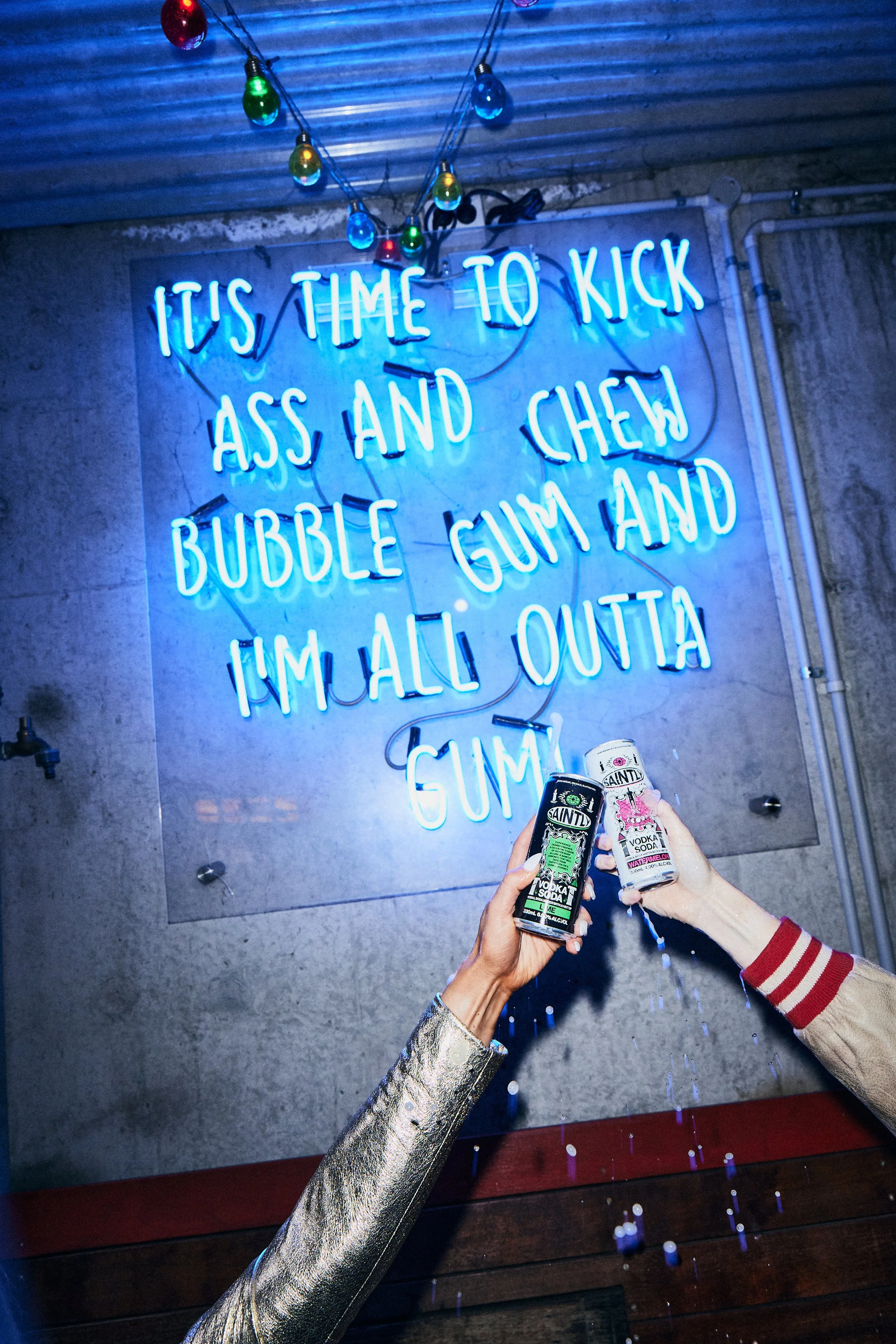 On Set Wardrobe and Styling for Saintly Vodka. Relevant and on brand wardrobe & propping to be supplied & styled to match the 90’s/colour brief.